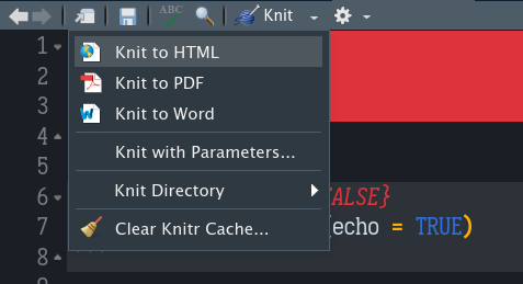 Tudo pronto, a última coisa agora é simplesmente gerar o arquivo final no formato que você desejar. No R Studio, na parte superior do seu editor de código você verá um botão escrito Knit com um ícone de um novelo de lã e uma agulha de tricô. Esse botão aciona o pacote knitr que é o responsável por costurar digamos assim o nosso documento final. Na setinha para baixo que aparece ao lado do ícone podemos então escolher entre os três fomatos de saída suportados: HTML, PDF e Word.